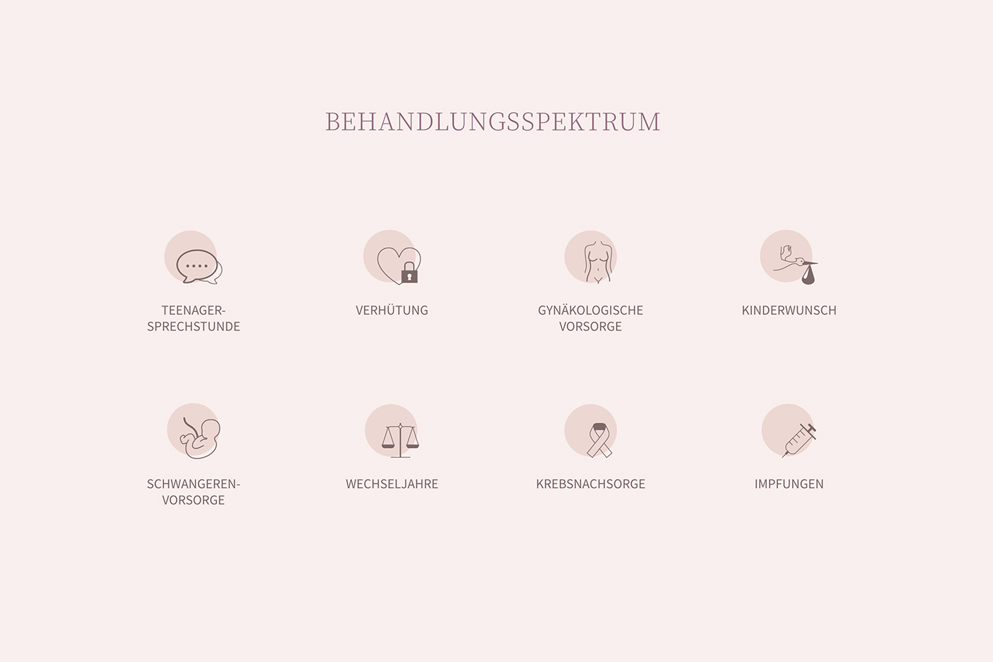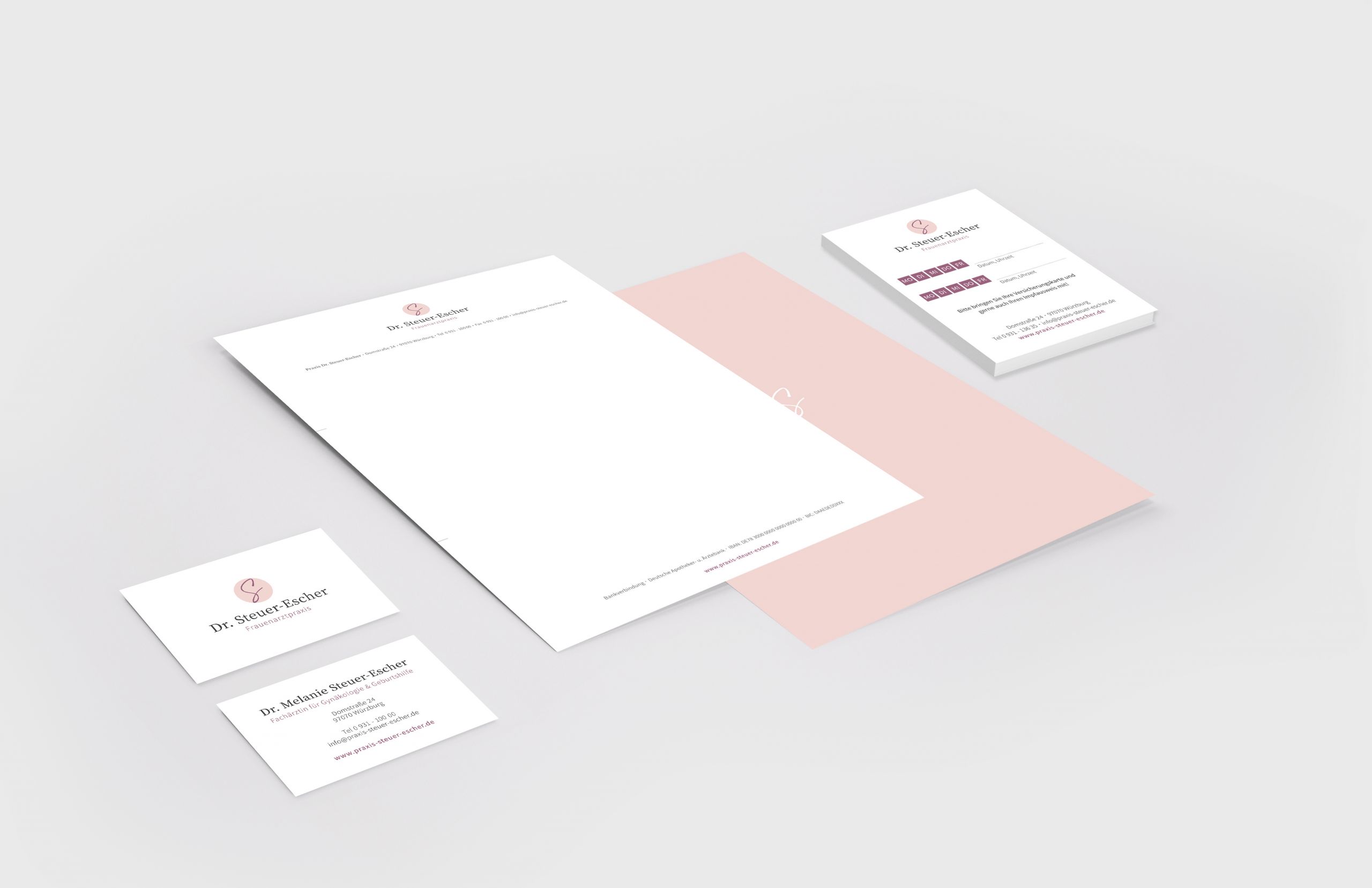 Zur Praxiseröffnung durfte ich die sympathische Gynäkologin begleiten und ihr komplettes Corporate Design in ihrer Lieblingsfarbe erstellen. Es entstanden Logo, Visitenkarte, Briefpapier, Flyer, Terminblock, sämtliche patientinnenbezogenen Kommunikationspapiere, die Beschilderung zur Praxis und eine Website als eleganter Onepager.